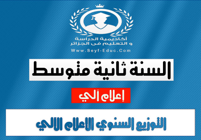 يسرنا أن نضع بين أيديكم و تحت تصرفكم ملفا خاصا بمستوى السنة الثانية متوسط الجيل الثاني ، و يتمثل في التوزيع السنوي لمادة الاعلام الآلي السنة الثانية متوسط الجيل الثاني، حيث يمكن تحميل الملف كمجموعة صور أو بصيغة pdf أو word و ذلك من أجل إتاحة مختلف التعديلات عليه من طرف الأستاذ.